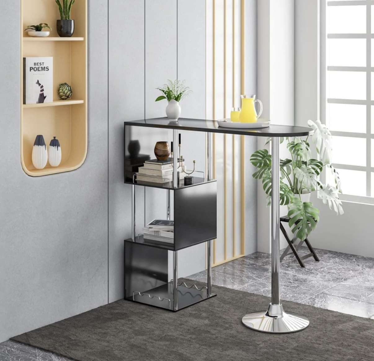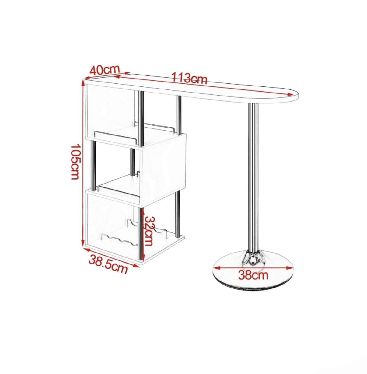 Barový stůl 40×113 cm černý chrom NOVÝ 2. jakost