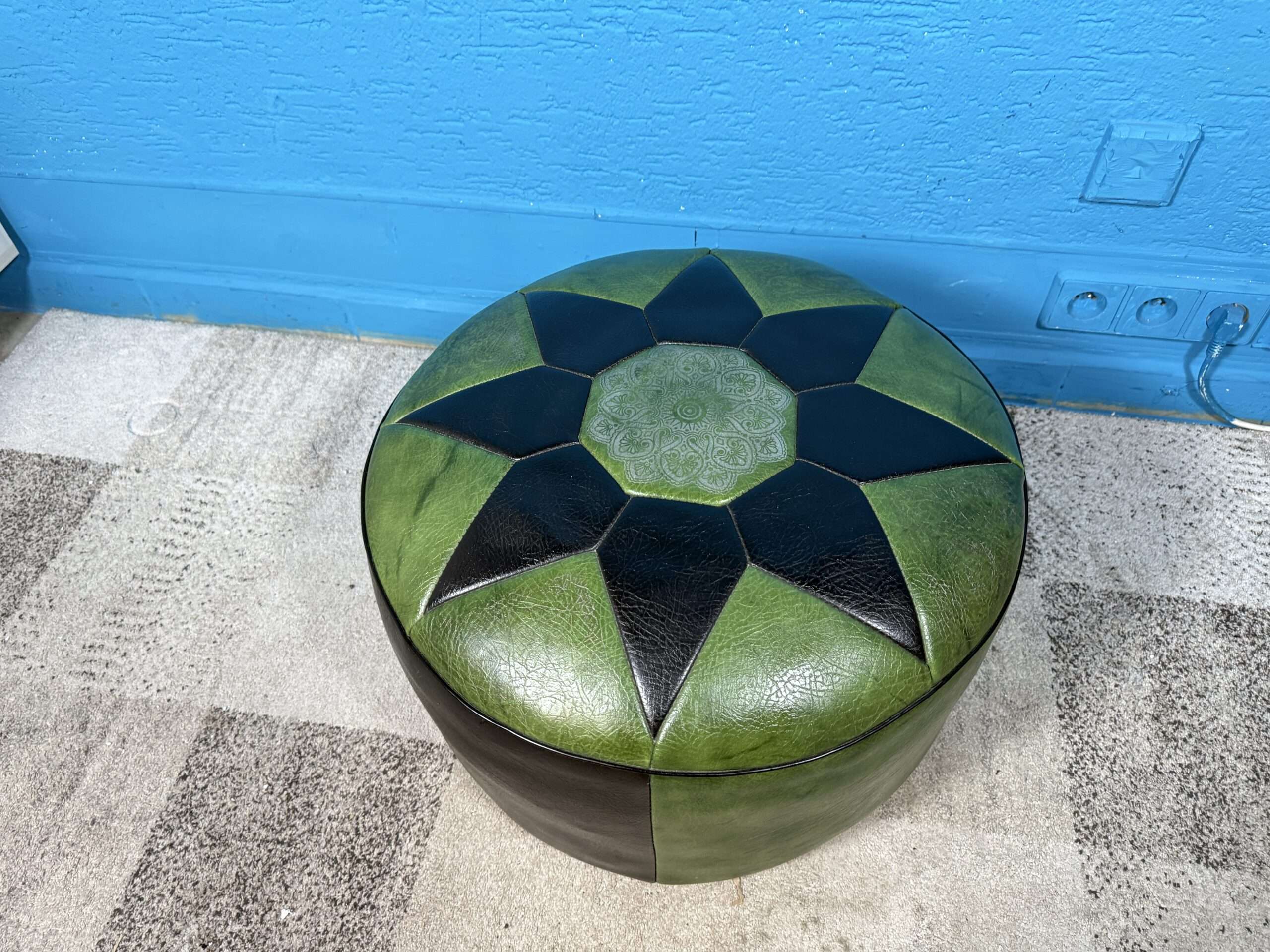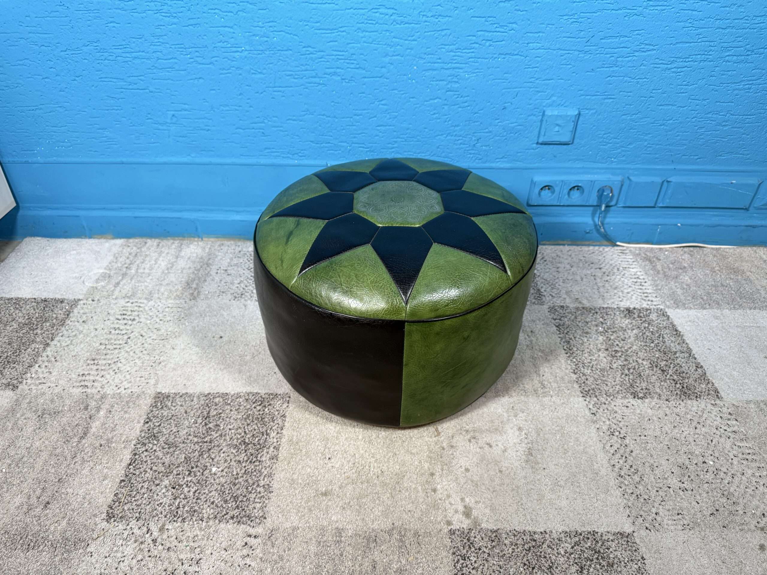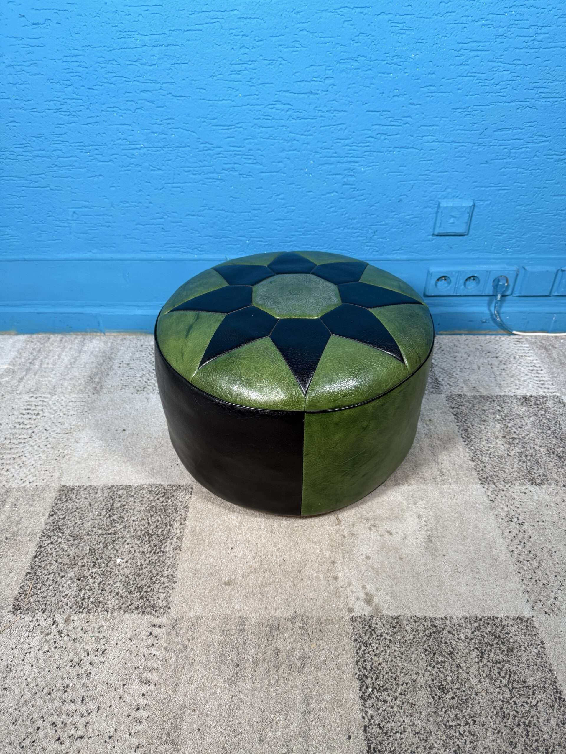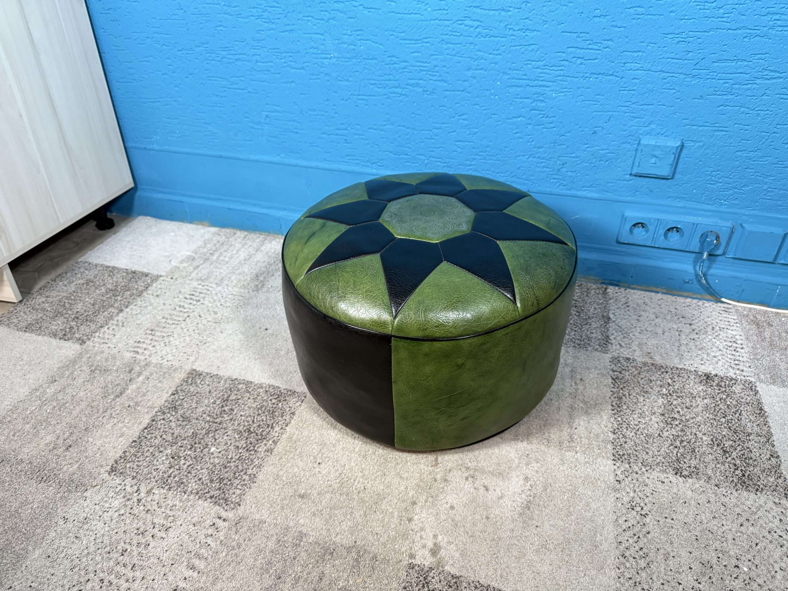 / Kožený puf / taburet zelený