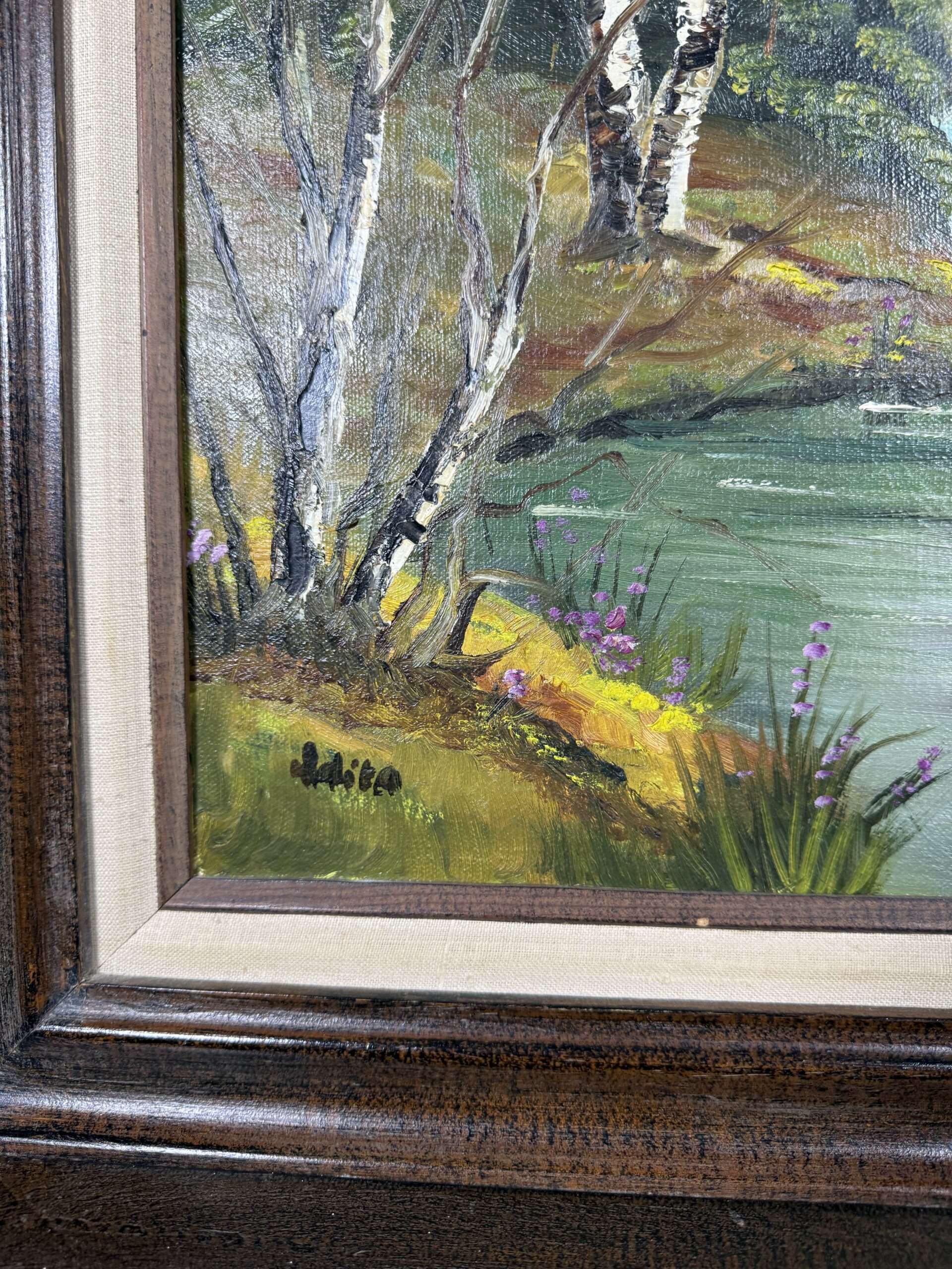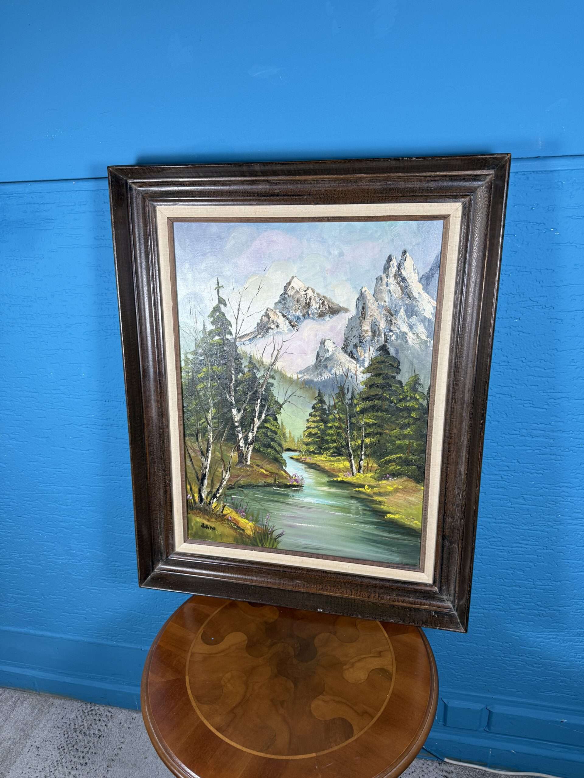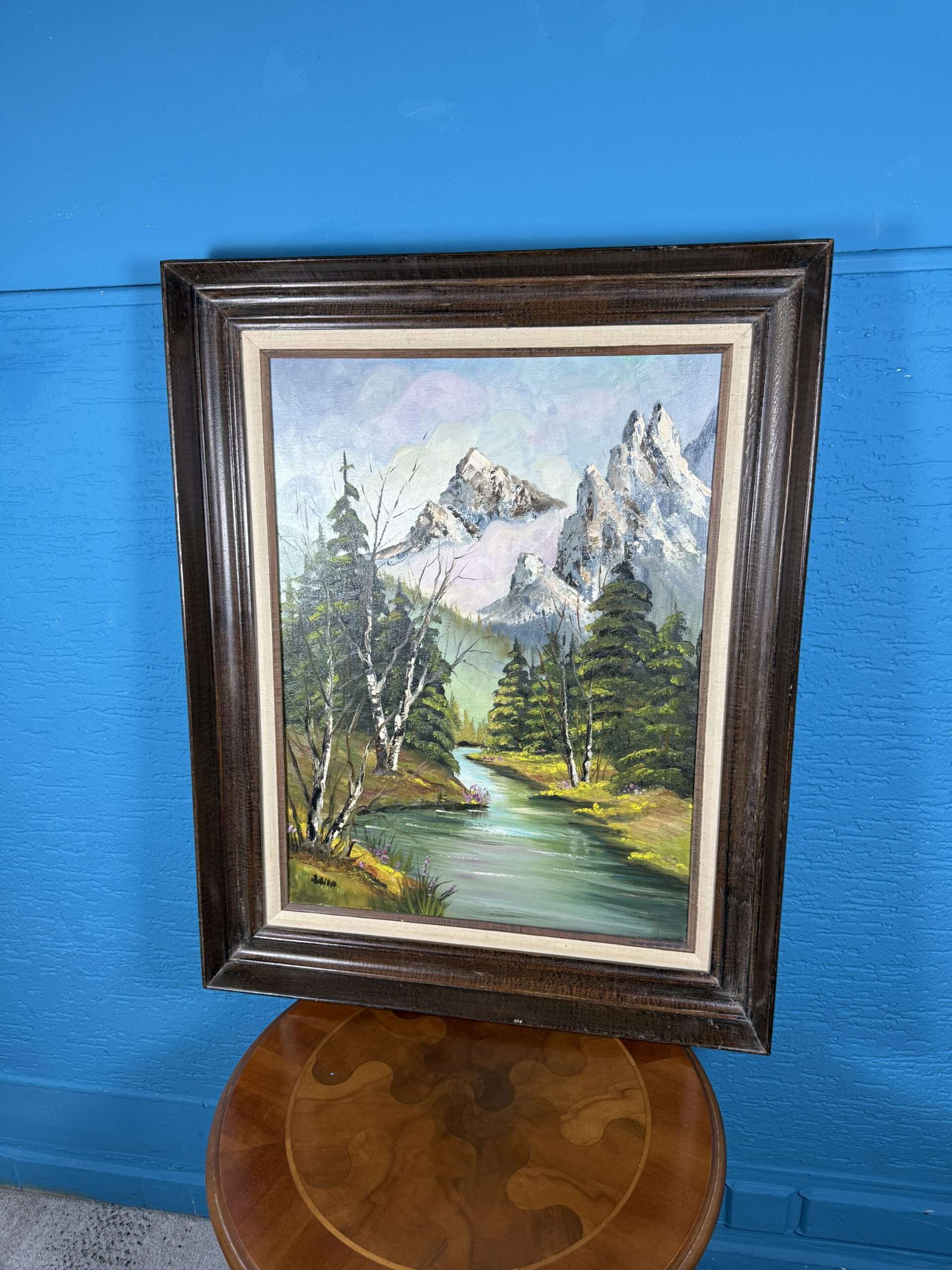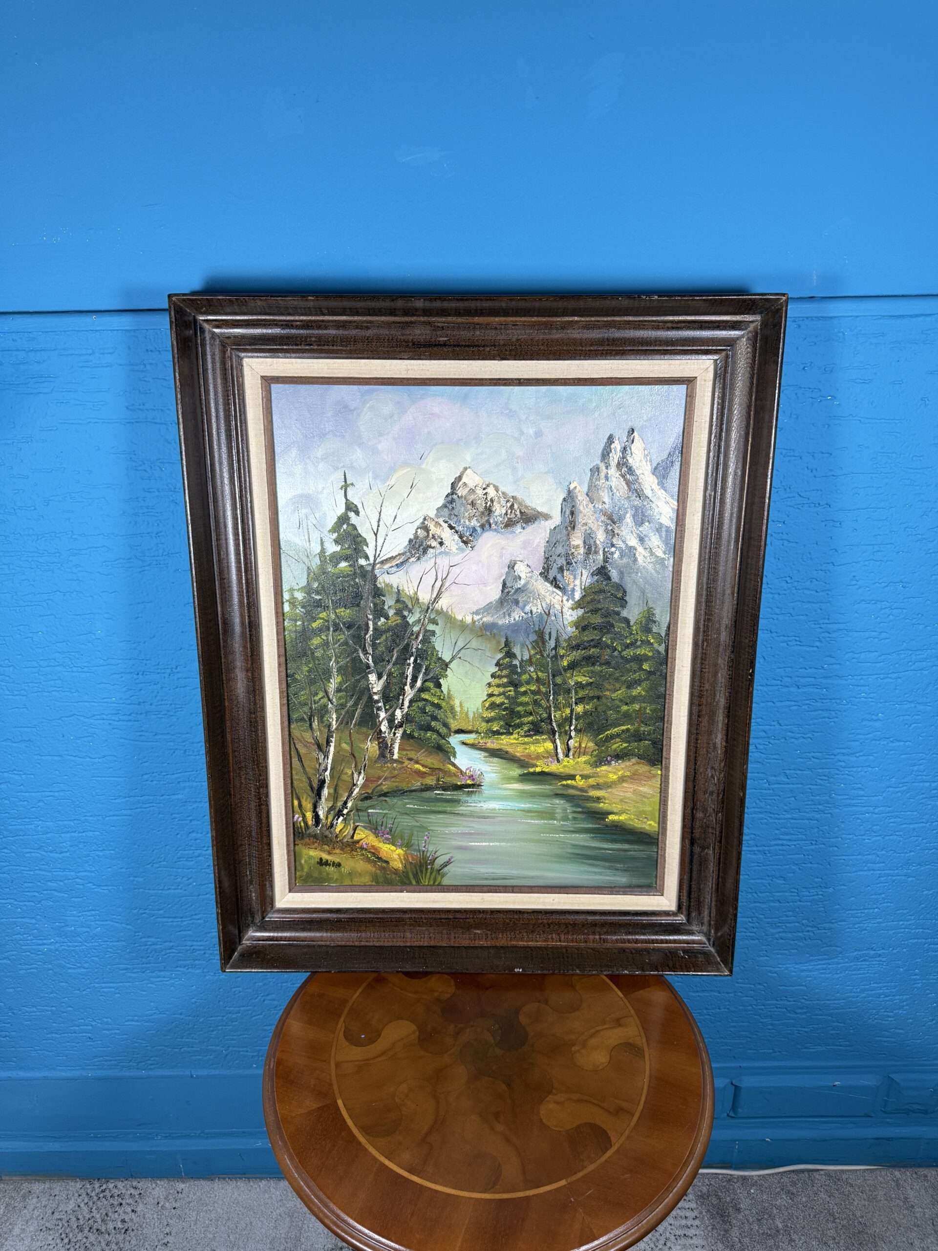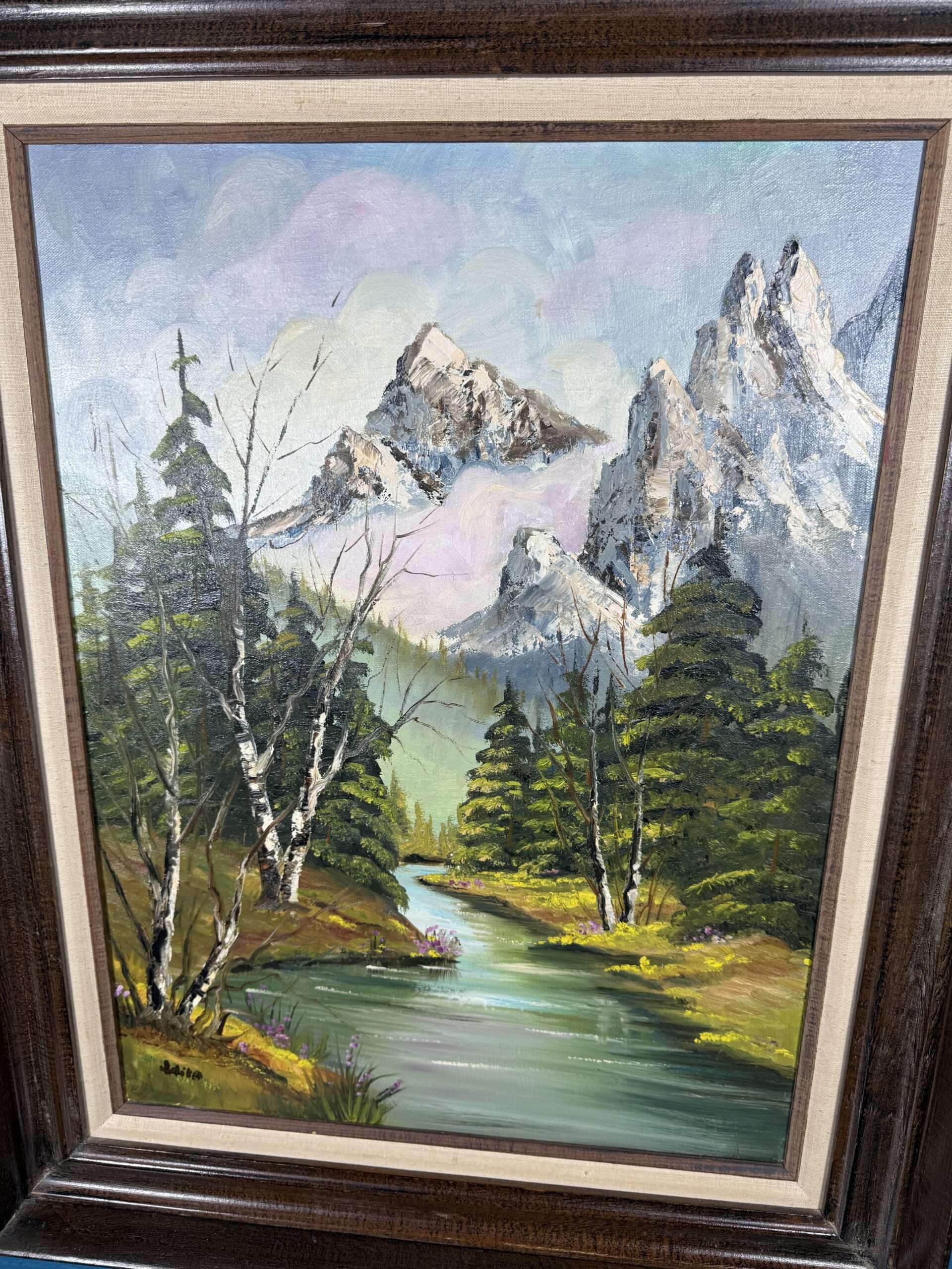 / Obraz Horská řeka a štíty olejomalba 62×78 cm
