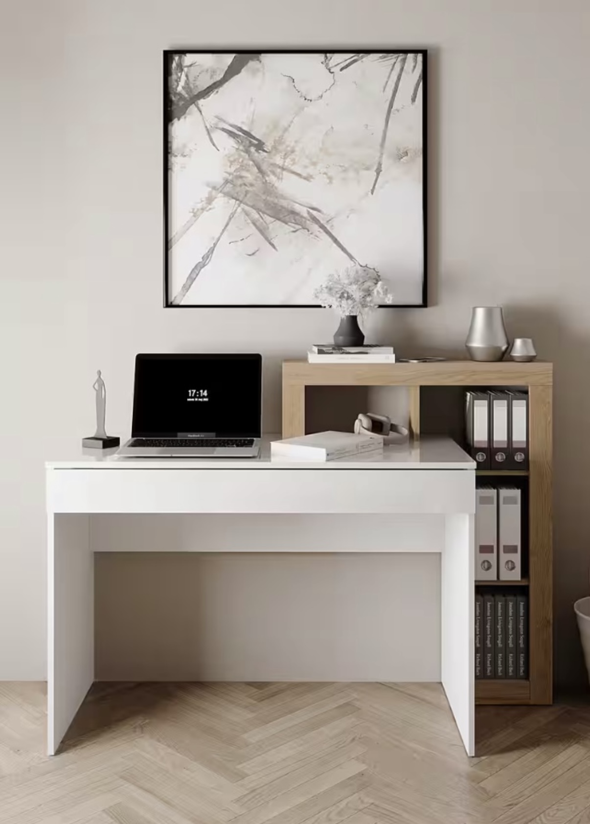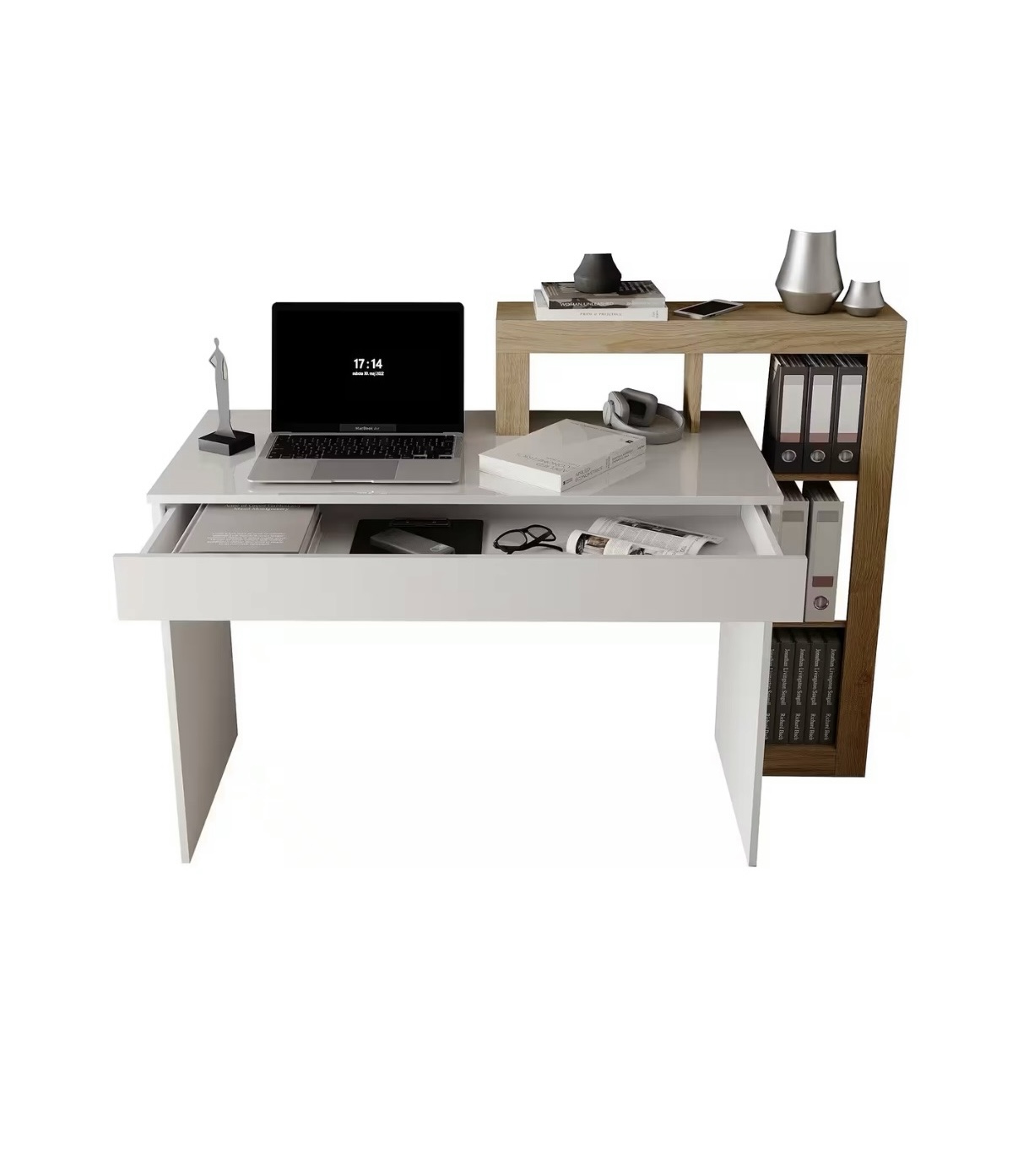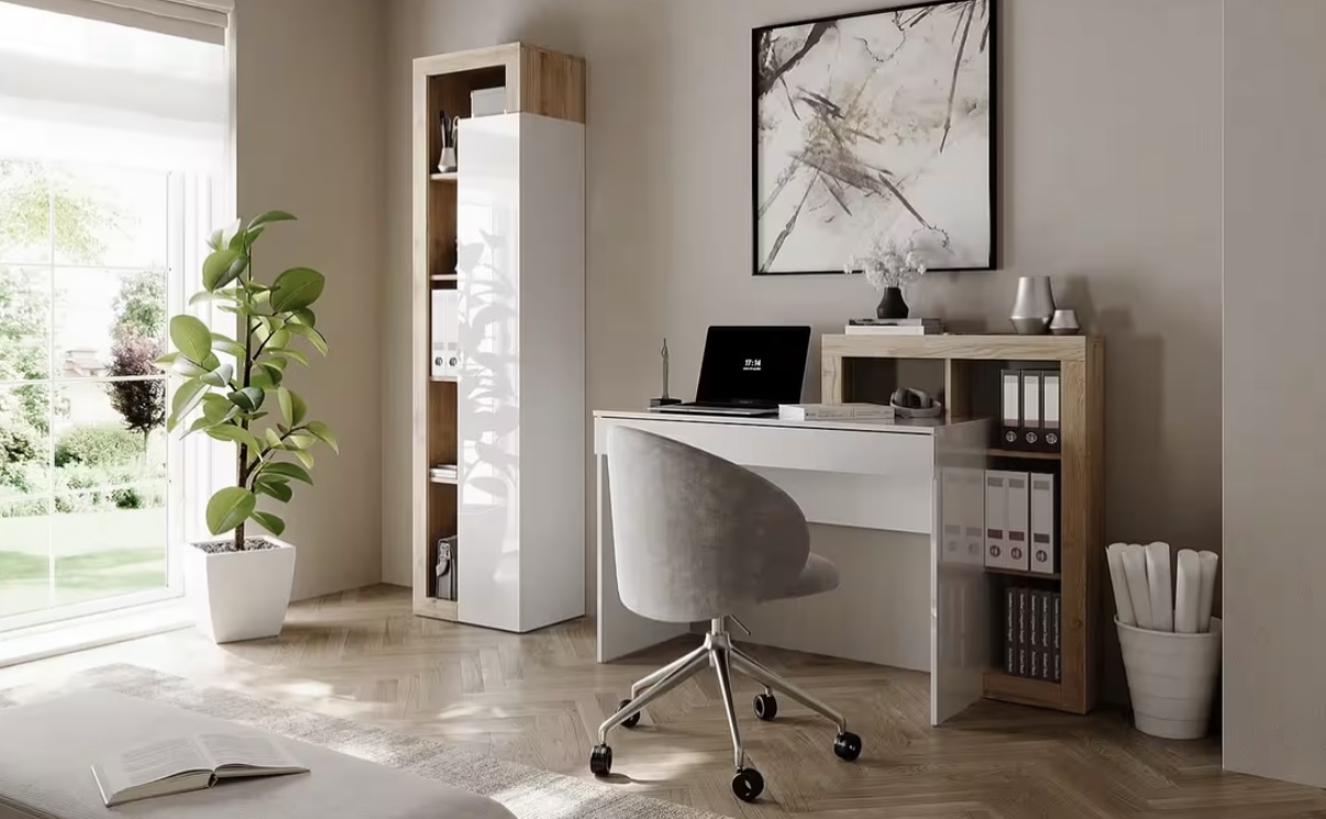 Psací stůl vysoký lesk bílý / sonoma NOVÝ 2.jakost
