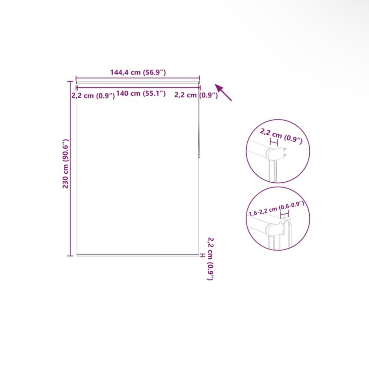 Upozorňujeme, že uvedená velikost odpovídá velikosti látky. Šířka horní lišty včetně montážního příslušenství bude o 3 cm širší než šířka žaluzie.